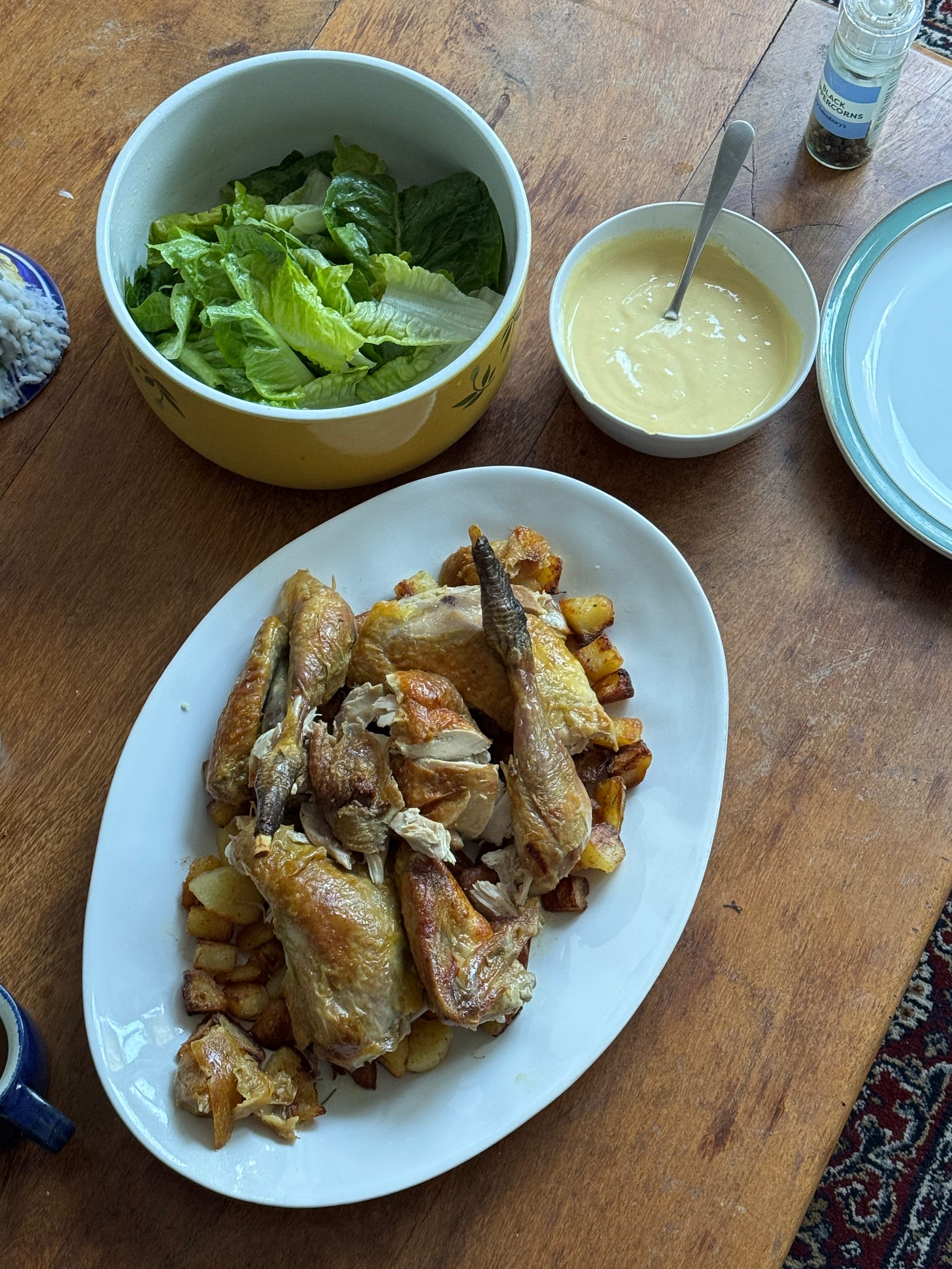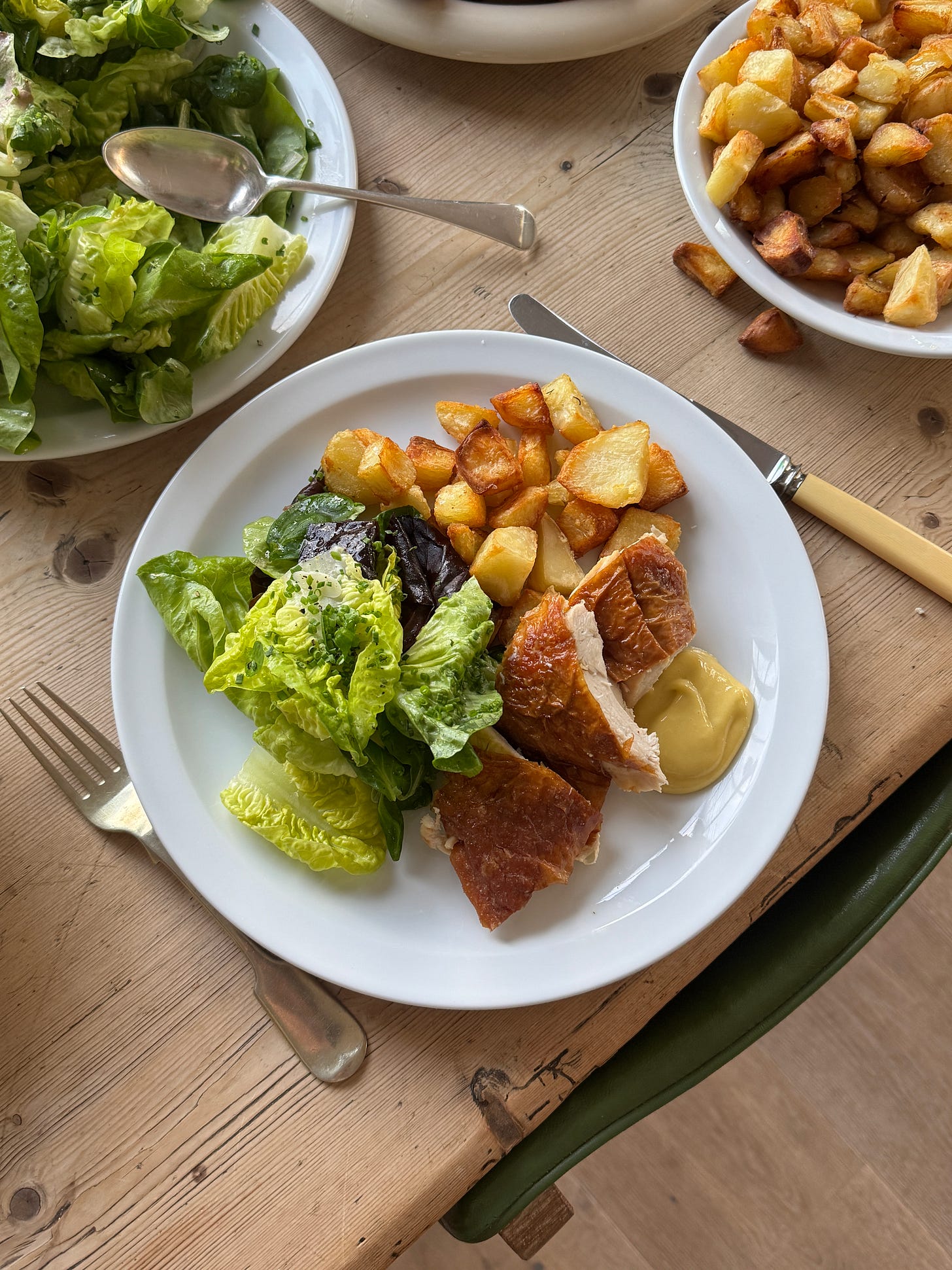 + chicken fat potatoes, mayonnaise and a green salad